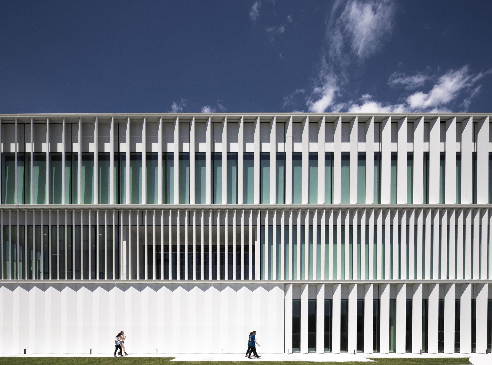 Material de fachada: Lamas extrusionadas de aluminio motorizadas, perfil de aluminio extrusionado sacado, panel fenólico, chapa de aluminio minionda lacada, Sistema Dry ST, Sistema Dry Invert.